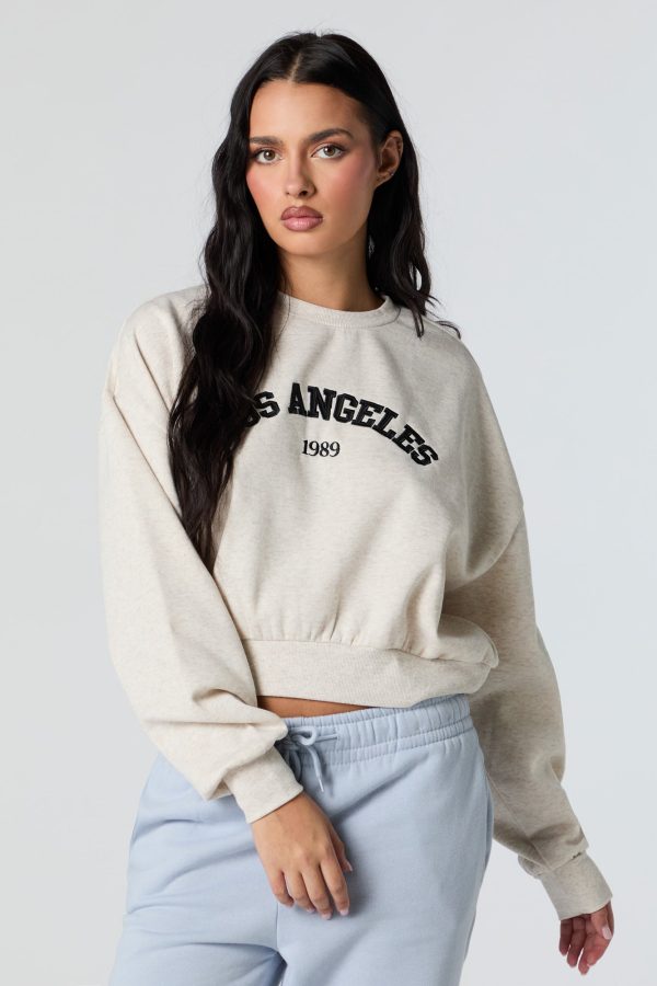 Los Angeles Embroidered Cropped Fleece Sweatshirt