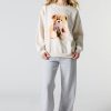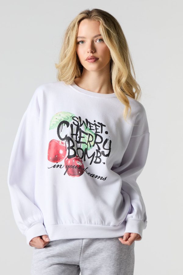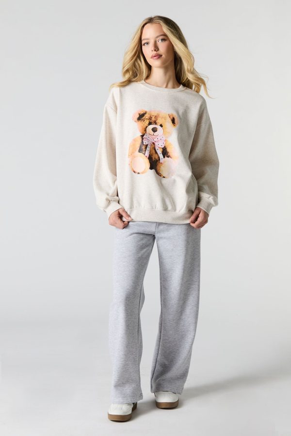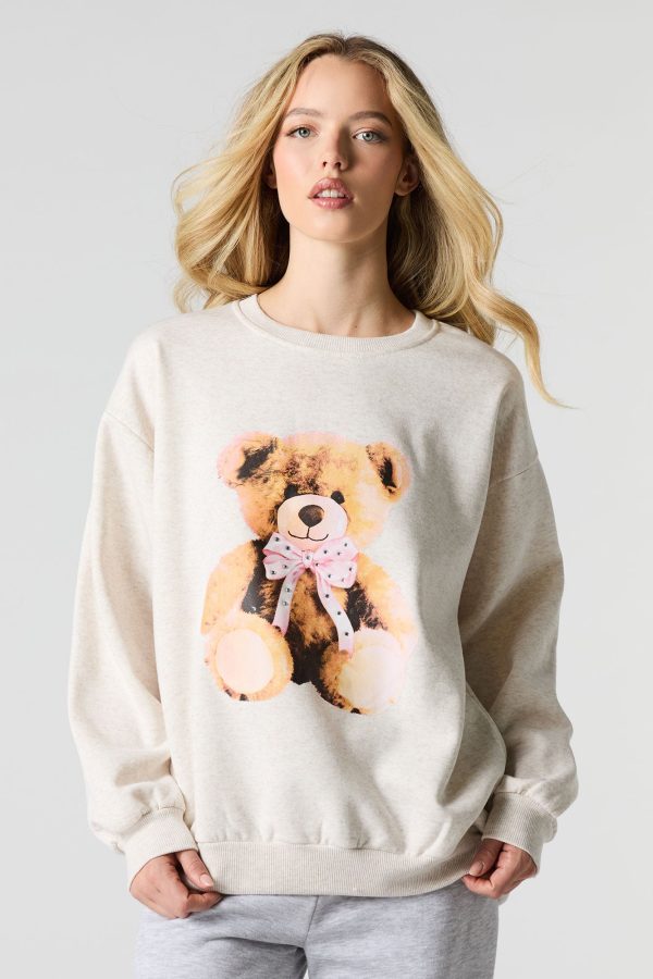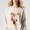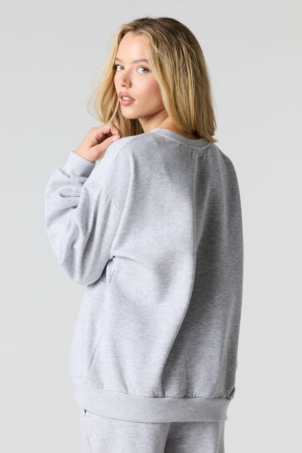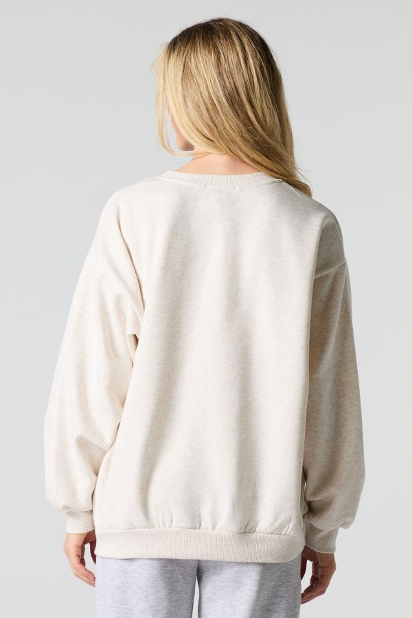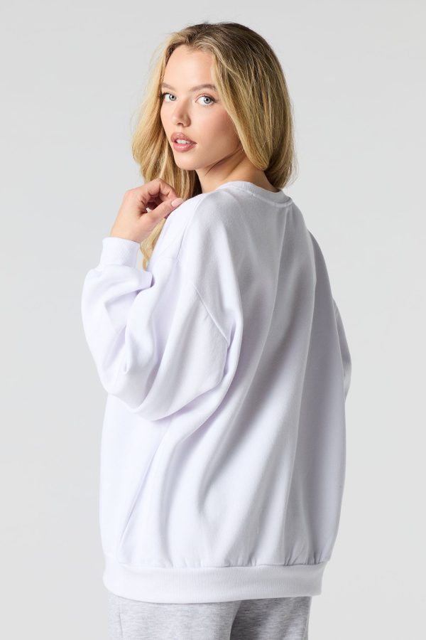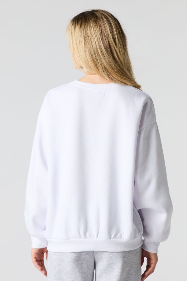 Oversized Cutesy Graphic Rhinestone Fleece Sweatshirt